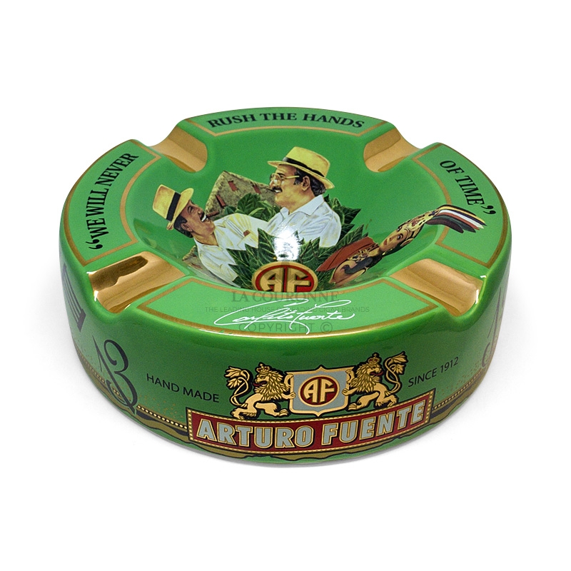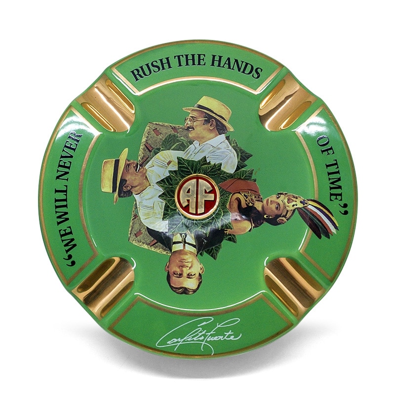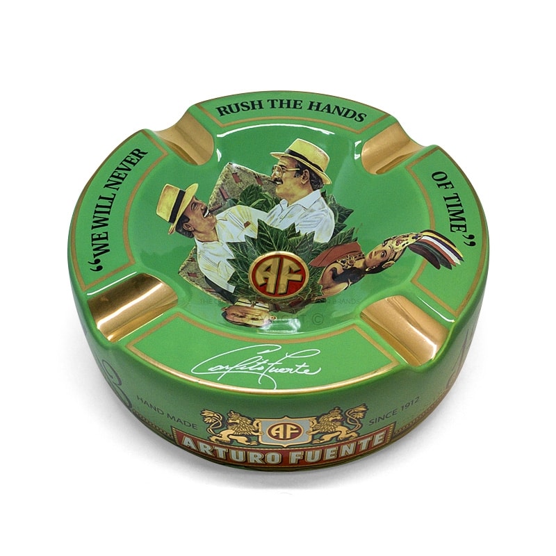 Le cendrier Arturo Fuente “We Will Never Rush The Hands Of Time” est peint, il est magnifiquement conçu et mesure 235 mm de diamètre et 70 mm de haut. Le cendrier peut accueillir jusqu’à quatre cigares, il est presque difficile de mettre des cendres dans cette belle œuvre d’art. Le cendrier «We Will Never Rush The Hands Of Time» d’Arturo Fuente est disponible en 4 couleurs, blanc, noir, rouge et vert.